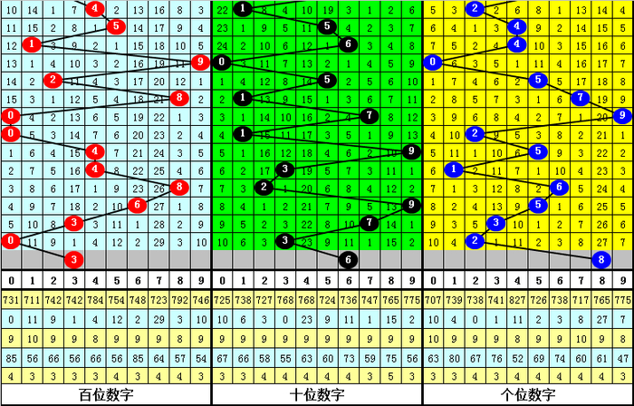 首位号码:上期为:0,遗漏5期,走势活跃,热码最近出现较少,本期注意热码回补,关注3。