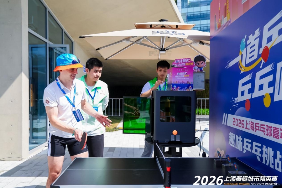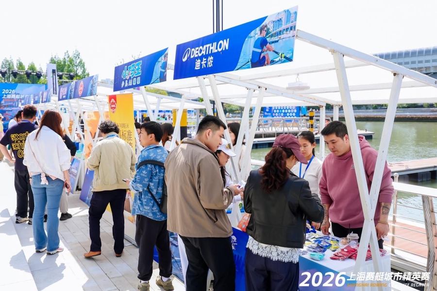 赛事期间,普陀区坚持“体育搭台、商业唱戏、文化赋能”理念,将赛事与区域高质量发展深度绑定,推动赛事价值与城市发展同频共振,精心打造“赛事+文旅+商业+展览”融合。市集上不仅设有乒乓球互动区、陆上赛艇体验点等趣味体育项目,还有各类文创和美食摊位,让大家在观赛、赏景、消费、体验中无缝衔接。参与体验的市民或运动员还可获赠普陀“乒享卡”,持卡可享全区300余家合作商户的专属优惠。这些举措有效激活了滨水经济新动能,推动赛事流量转化为消费流量与发展增量。